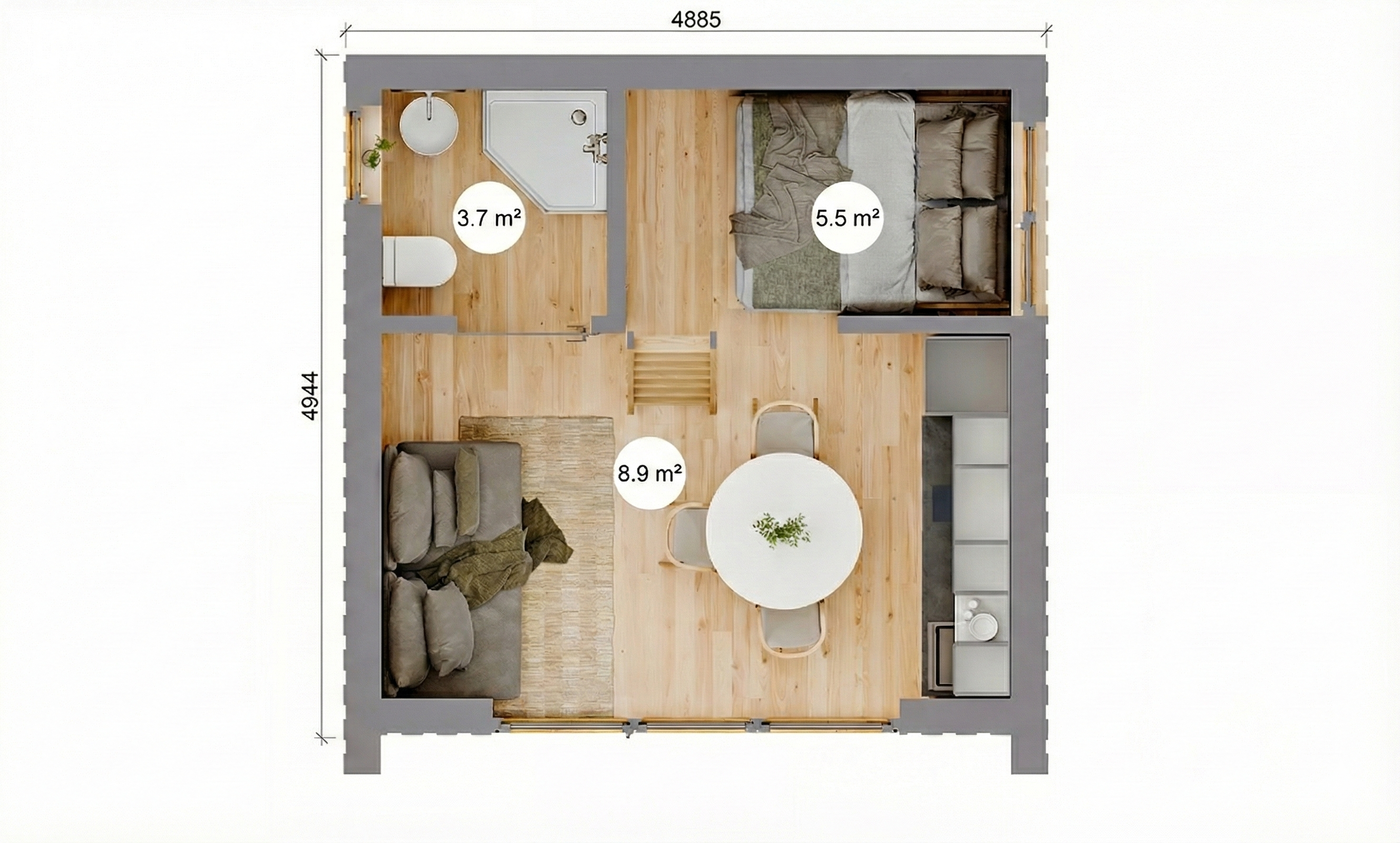 Dom 24 m² mieszkalny, modułowy, całoroczny GORAJ V7_A1 – Twój nowy dom w 3 tygodnie