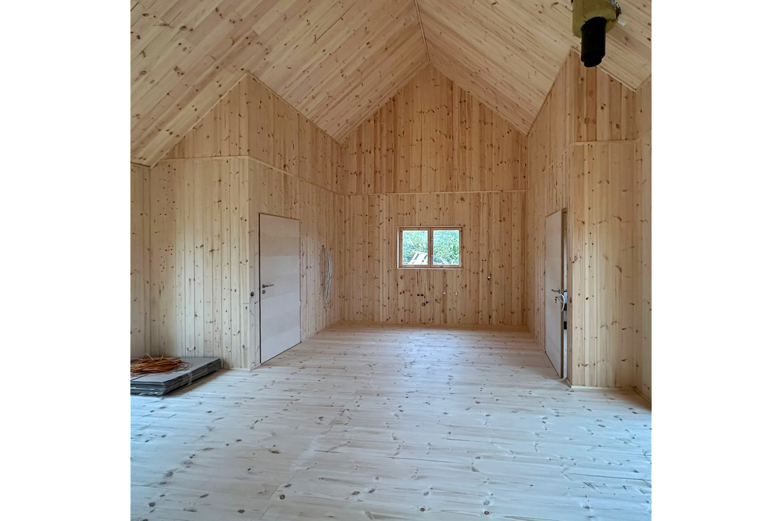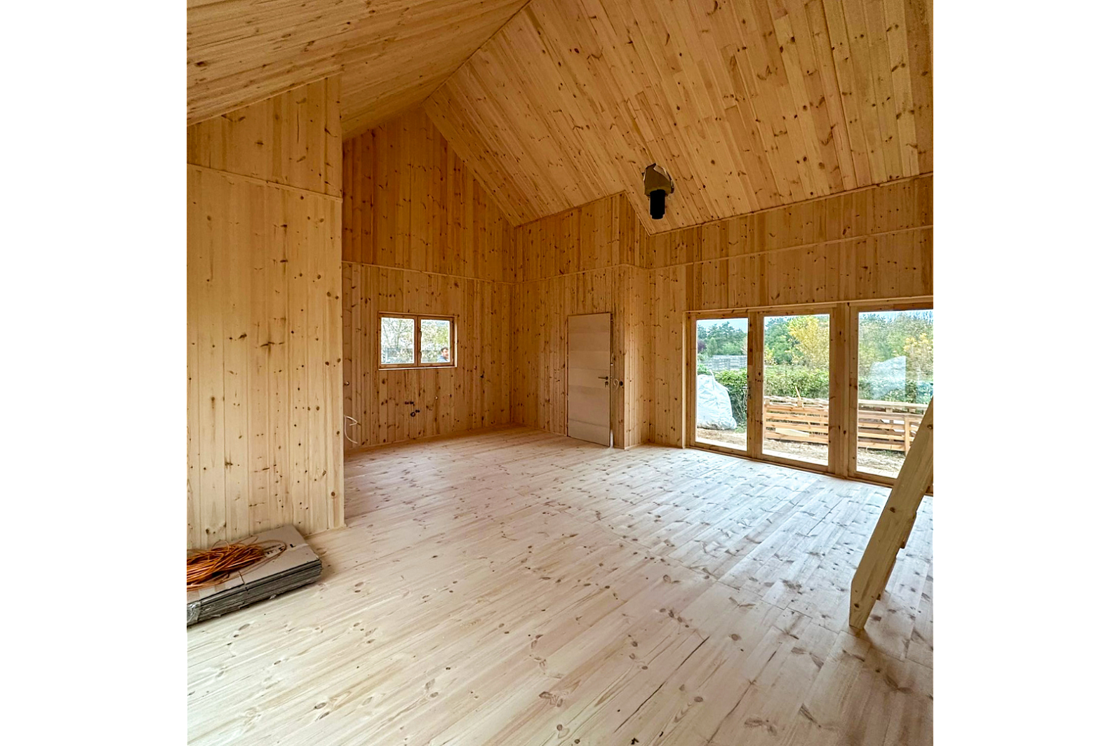 To więcej niż zwykły domek – to komfortowy, ocieplony dom całoroczny, z antresolą, pięknym drewnianym wnętrzem i stylową elewacją w kolorze RC365 Remmers.
